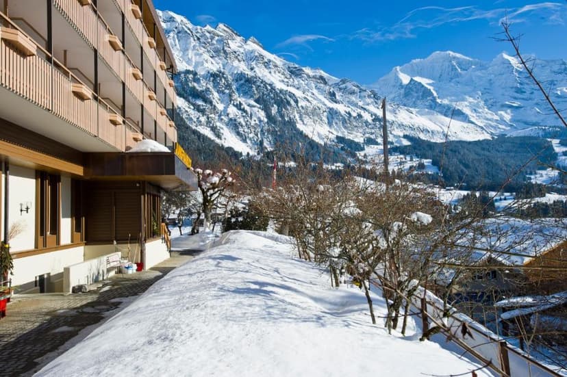 Set upon a southwest-facing mountain terrace, Wengen is sheltered and bathed in glorious sunshine most of the ski season from December to early April. Sunnies on! This does mean that the snow can be a bit temperamental at lower altitudes, but there are plenty of runs higher up the mountain to play on, and lots of snow cannons keep the main slopes topped up.